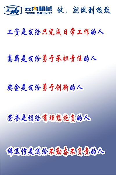 云內機械企業和全體員工將 “做,就做到極致” 作為企業文化的核心,是共同認可和崇尚的價值評判標準 。 做,強調執行力;做到極致,強調品質的極致追求,把工作做精,事情做細。 “做,就做到極致” 就是以積極的思維方式,滿懷熱情,付出不亞于任何人的努力,發揮自己最大的潛能,人生一定會碩果累累、幸福美滿 !